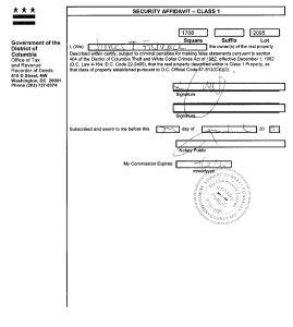 The affidavit in which Fishback declared that his D.C. condo is a "Class 1 Property," which, according to the district, is a residential property "that is occupied and is used exclusively for nontransient residential dwelling purposes."