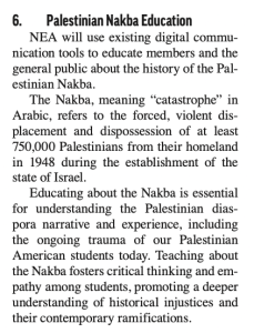 On the same page, the NEA outlines as another priority the task of teaching its members that anti-Zionism is not anti-Semitism.