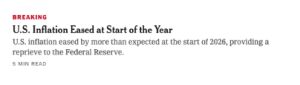 Truflation, a private sector data collector and provider, posted on Jan. 28, 2026: "Truflation US CPI today: 1.16% Y/Y ... The categories with the most consistent downtrends in January are Food and Housing, but we also see cooling in household items that had previously been rising due to tariffs, as well as in gasoline, clothing, and communications (cellular phone services)."