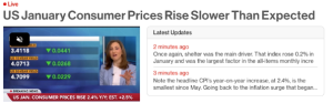 The Bureau of Labor Statistics released its Consumer Price Index for the month of January, and it showed annualized inflation dropping to 2.4 percent for the 12 months ending in January, down from 2.7 percent for the 12 months ending in December.