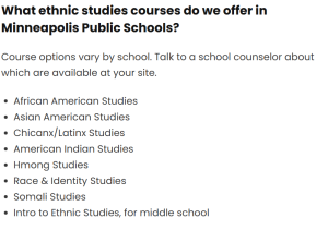 MPS didn’t say which courses have been updated, but its website states, "Ethnic Studies courses are one part of our equity work and do not replace efforts to transform all Social Studies courses."