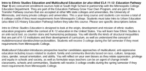 There’s also an introduction class for high schoolers in which students will learn how "Ethnic Studies is an anti-racist tool," and how to "identify the kinds of structural inequalities that are part of K-12 institutions," according to the course description. A prerequisite for that class, "Intro to Urban Education," lists themes like "Race, Identity & School Experiences," "Indigenous Education," "Black Lives Matter at School," "Language Justice," and "Decolonizing Education."