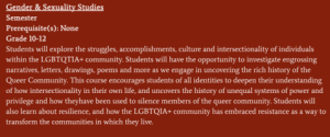 One class "lifts up the voices and perspectives of Chicanxs/Latinxs to tell their own his-stories and her-stories" of "everyday resistance," according to the course description. Other courses teach case studies "centered around counter-narratives of communities of color" and "the history of unequal systems of power and privilege and how they have been used to silence members of the queer community."