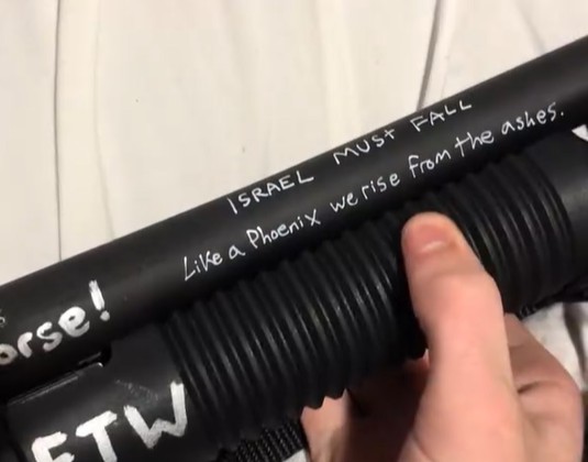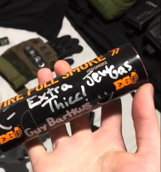 Westman wrote "6 Million wasn’t enough" on a holster and "Extra Thicc! Jew Gas" on a canister. He wrote other messages like "ISRAEL MUST FALL," "NUKE INDIA," and "KiCK A SPiC" on weapons  and magazines in the arsenal.