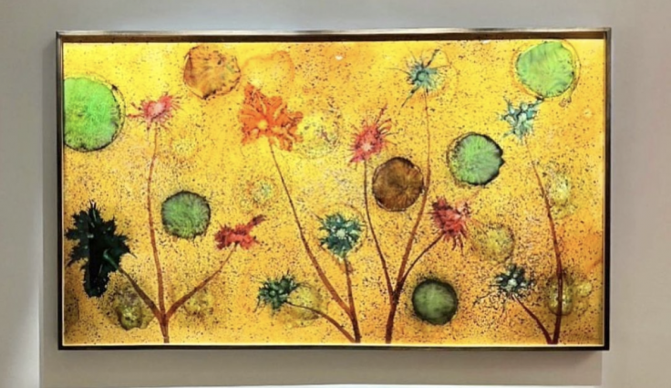 The "self-taught" artist is experiencing rare success in the art world, selling pieces for tens of thousands of dollars. One untitled work, featuring a yellow background and colorful flowers, is listed for $225,000.