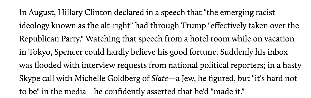 4) Spencer was overjoyed when Hillary quoted "alt-right" tweets in her dumb speech on the subject