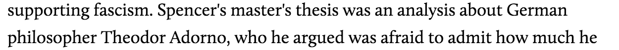 This is so sad and telling. Spencer's is an observation that someone who puts a Monet in a bathroom because "it matches" or calls "Starry Night" his "favorite painting" or has a Mona Lisa tie would make. This is a man who is supposed to have written a thesis on Adorno. Sad!
