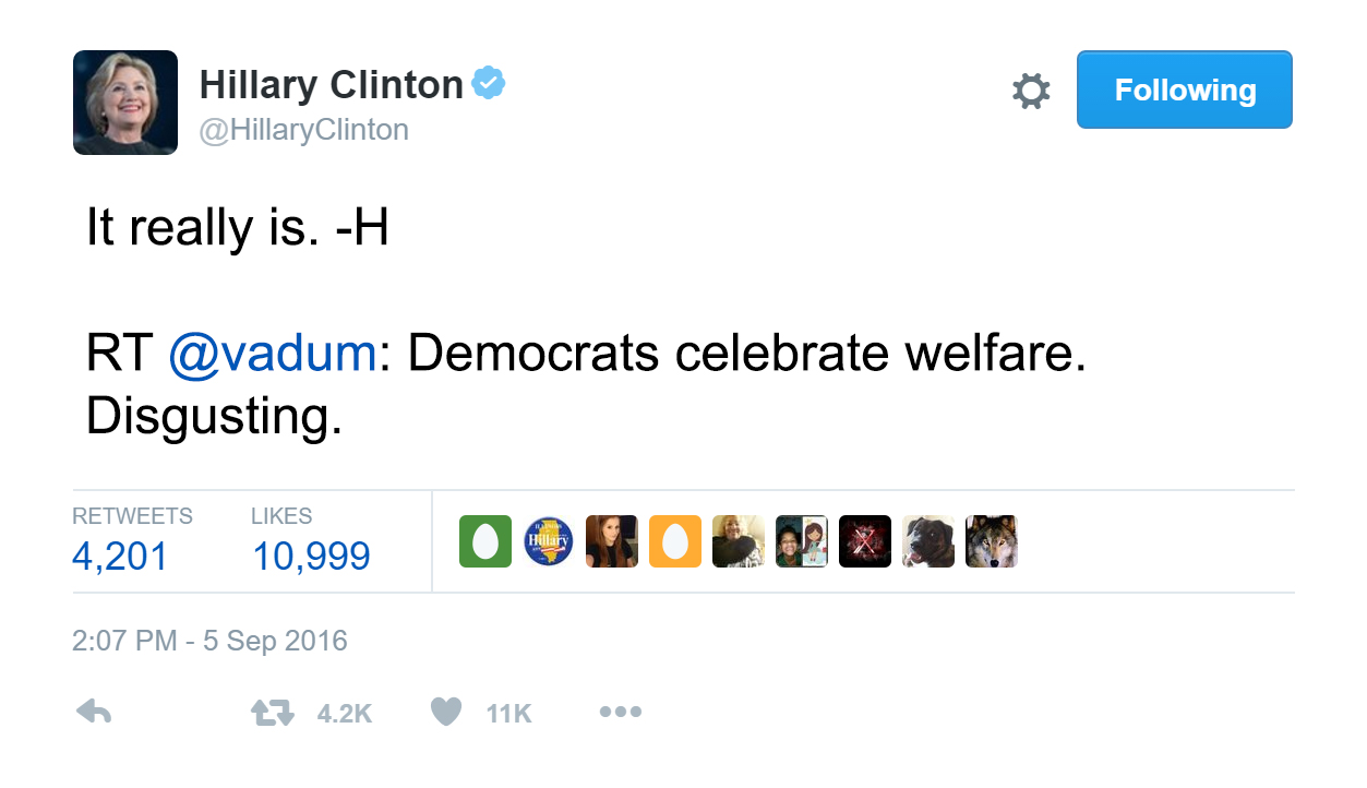 Ever since her speech on the alt-right, Hillary Clinton has been making no bones about her support for Ronald Reagan, George W. Bush, John McCain, and other conservative luminaries. Her newfound sympathies have been on full display in her tweets.