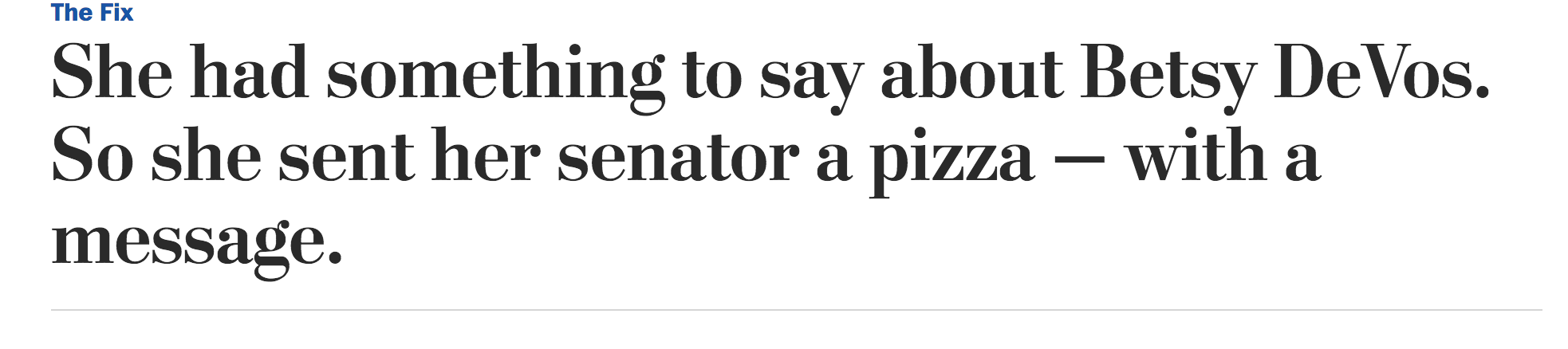 Last night I read a story in the Washington Post about how a constituent of Orrin Hatch tried to send a powerful message to her senator—with pizza!