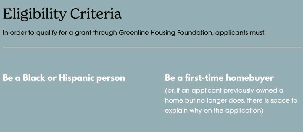 "In order to qualify for a grant through Greenline Housing Foundation, applicants must be a Black or Hispanic person," the group stated.