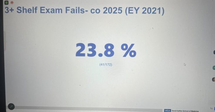 Update 05/24/24, 9:20 a.m: A previous version of this story incorrectly stated that a fourth of UCLA medical students failed three or more shelf exams in 2021. The story has been updated to reflect that a fourth of UCLA medical students in the class of 2025 have failed three or more shelf exams.