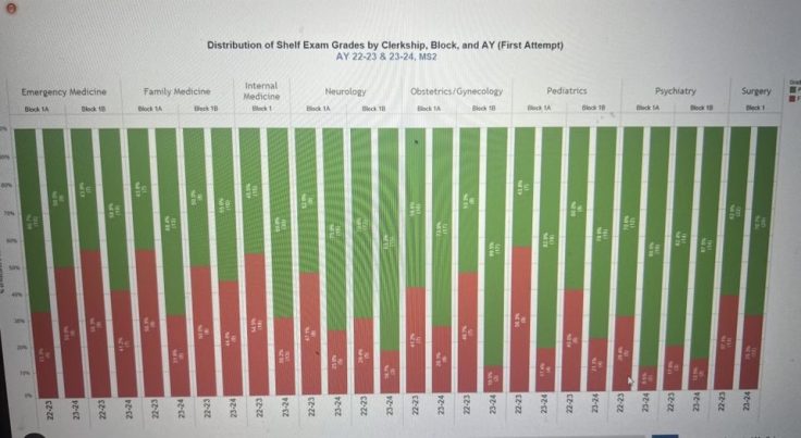 Between 2020, the year Lucero assumed her post, and 2023, when the first classes she admitted were taking their shelf exams, the failure rate rose dramatically across all subjects, in some cases increasing tenfold relative to the 2020 baseline, per internal data obtained by the Free Beacon.