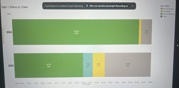 Around 20 percent of UCLA students have not taken Step 2 by January of their fourth year, according to the data. Ten percent have not even taken the more basic Step 1—an "extremely high number," one professor said, that will force many students to extend medical school.