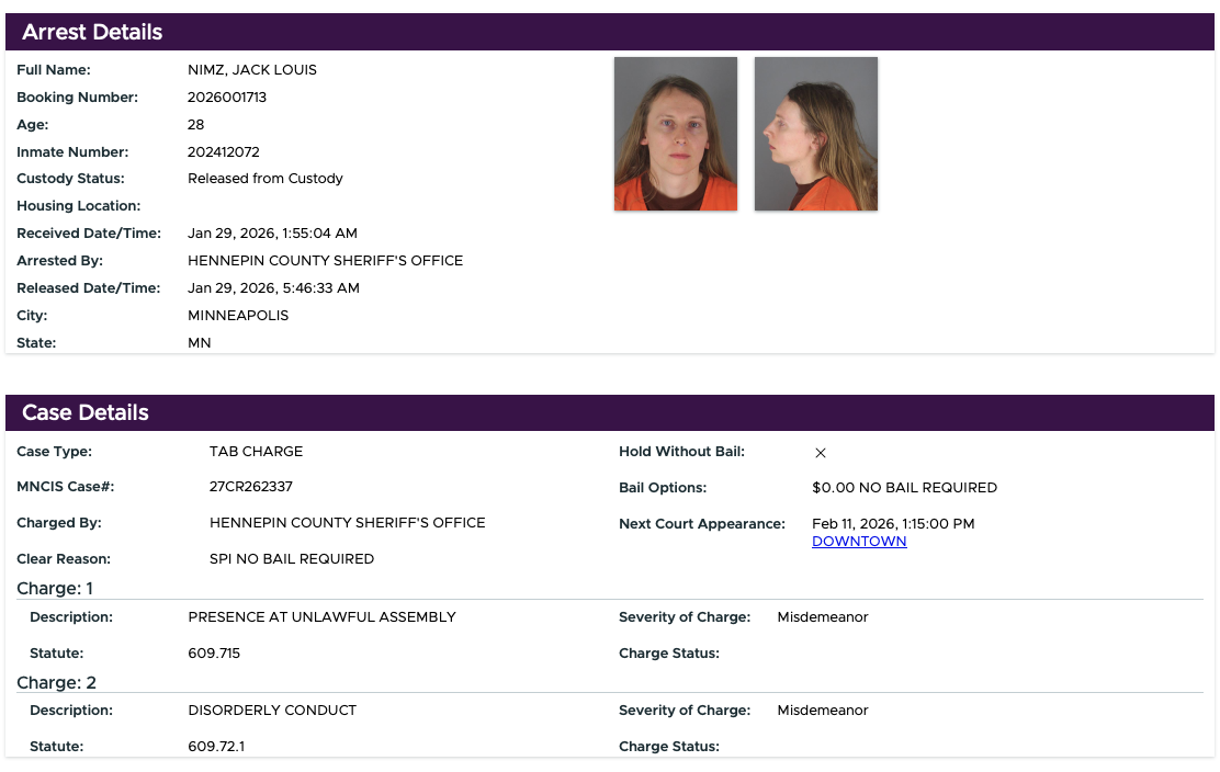 The Minneapolis Public School District did not respond to multiple requests asking whether Nimz would be disciplined for Wednesday's arrest or if it was aware that the radical violently stormed a campus building before obtaining a teaching license.