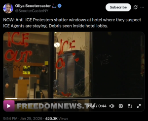 Minneapolis (Jan. 13) — Far-left rioters have rushed to another hotel (the Graduate by Hilton) after being told that federal agents are sleeping there. This follows attacks on other hotels last week. Goal is to intimidate management into canceling bookings.pic.twitter.com/02e1z50bcr