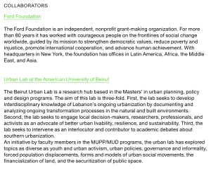 "The Beirut Urban Lab is a collaborative and interdisciplinary research space," she said. "It produces cutting edge scholarship on urbanization by documenting and analyzing ongoing transformation processes in Lebanon and its region's natural and built environments."