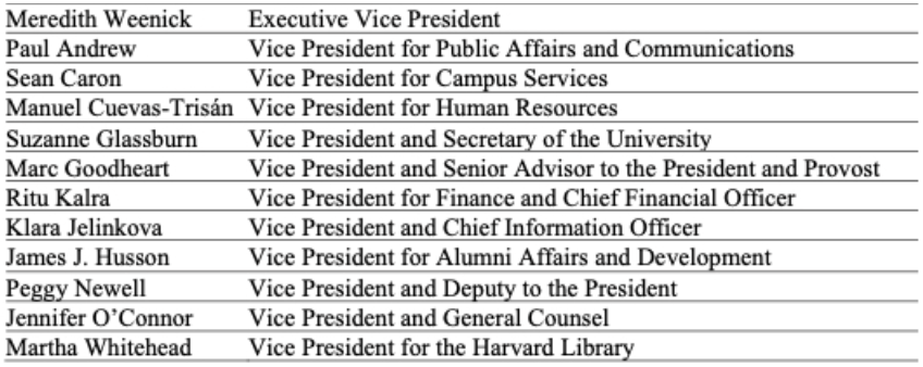 In a March 27 statement affirming Harvard’s "Aaa" rating, Moody’s listed among "factors that could lead to a downgrade of the ratings" "over an extended period of time, gradual erosion of brand or competitive position relative to other elite global universities." The statement also said that "Harvard has considerable exposure to governance scrutiny. An evolving political landscape adds potential operational and financial complexities." Moody’s saw the 12 vice presidents as a positive: "a deep bench of highly skilled administrators provide ample capacity to manage through periods of change or weaker operating performance without adverse impacts to credit quality."