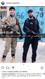In August, Mahdawi posted pictures to his Instagram account honoring the "martyrdom" of his "cousin," Maysara Masharqa, who served as a prominent field commander in the military wing of the Al-Aqsa Martyrs Brigade. Mahdawi praised Masharqa as a "fierce resistance fighter" who had been fighting since he was 17, adding that he spent seven years in an Israeli prison.