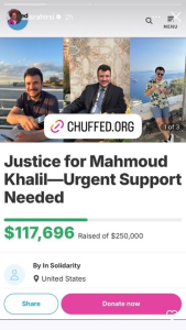 The online fundraiser was launched after ICE took Khalil into custody Saturday night after the State Department revoked his visa and green card. By Wednesday afternoon, the fundraiser had raised nearly $270,000, surpassing its $250,000 goal and prompting administrators to set a new target of $500,000.