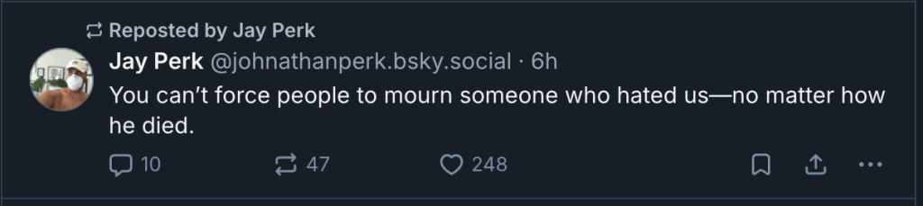 Perkins, a veteran diversity consultant who worked in the Office of the General Counsel at Harvard University before joining UCLA in 2019, took to left-wing X copycat Bluesky on Friday to disparage Kirk. In one post, he responded to a user who called Kirk the right's "Rush Limbaugh replacement" with the message, "Yup. Good riddance, both." In another, he wrote, "It is OKAY to be happy when someone who hated you and called for your people's death dies—even if they are murdered."