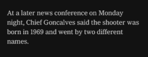 The New York Times initially reported that Goncalves said the shooter "went by two different names," but didn’t include either. It added them in Tuesday morning without an editors' note.