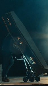Pop ends "Funtime" like Lear, like Sinatra before the final curtain. A coffin is propped up in the wings, as it waited for Screamin’ Jay Hawkins, James Brown, and all three Stooges. The grandeur of the subject faces the absurdity of his predicament. To howling acclaim, Pop climbs in and closes the lid. As the coffin is wheeled across the stage, his hand appears, waving farewell. Then he flicks the lid open, laughing at his own joke and at death itself. We are still laughing as he disappears into the dark wings.