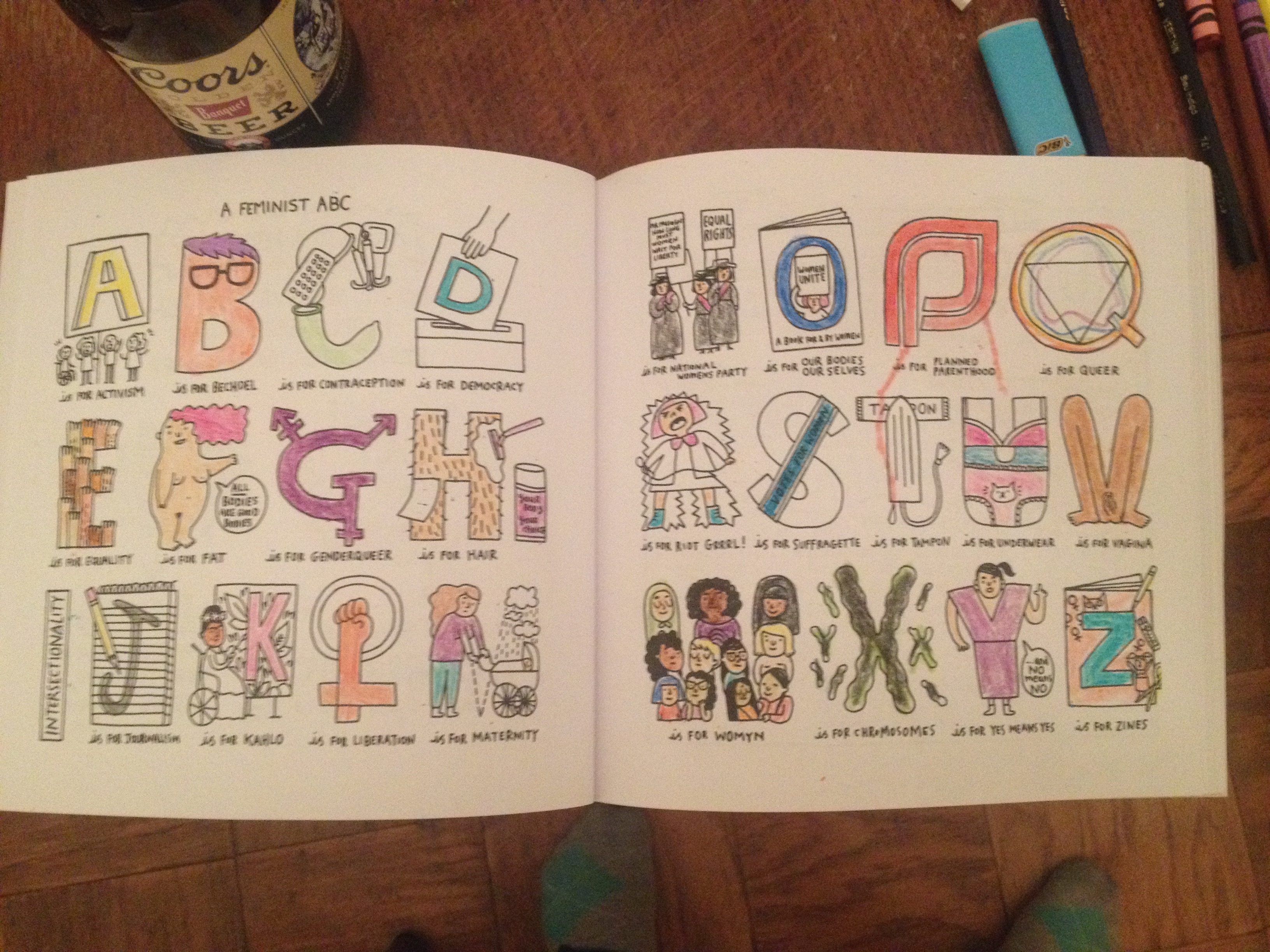 My main takeaway from The Feminist Activity Book was confusion. What does it mean to be a feminist in 2016? Crudeness, perversion, adolescent delight in the scatological? Fanatical support for legalized infanticide? On the first page under the heading "Are You a Feminist?" we are asked, "Do you believe that all people are equal, regardless of gender?" Ignoring the use of gender where I would say "sex," I unquestioningly answered "HECK YES!" and followed the arrow to a star-spangled caption that read, "Yay! You are a feminist." This is a question about metaphysical dignity. What does it have to do with "Anal Beads"? The impression that I was missing something remained a few pages later when I got to "A Feminist ABC": "S is for Suffragette"? Sure. "Y is for Yes Means Yes," beyond doubt. "E is for Equality." Of course. Ditto "M is for Maternity," the only mention of childrearing in this book, accompanied here by a somewhat baleful-looking image of a woman pushing an old-fashioned pram. But "D is for Democracy"? "G is for Genderqueer," "Q for Queer," "H is for Hair" (in this case unshaven leg hair), "P is for Planned Parenthood," "T is for Tampon"? By the time I got to "U is for Underwear," I had to ask whether Gemma Correll and editors thought this through at all. I felt the same way when I realized that, despite instructions inviting me to do so, I couldn’t even cut out my pronoun badge or my lavishly illustrated paper doll or even my anti-harassment street kit because there were activities on the opposite side.