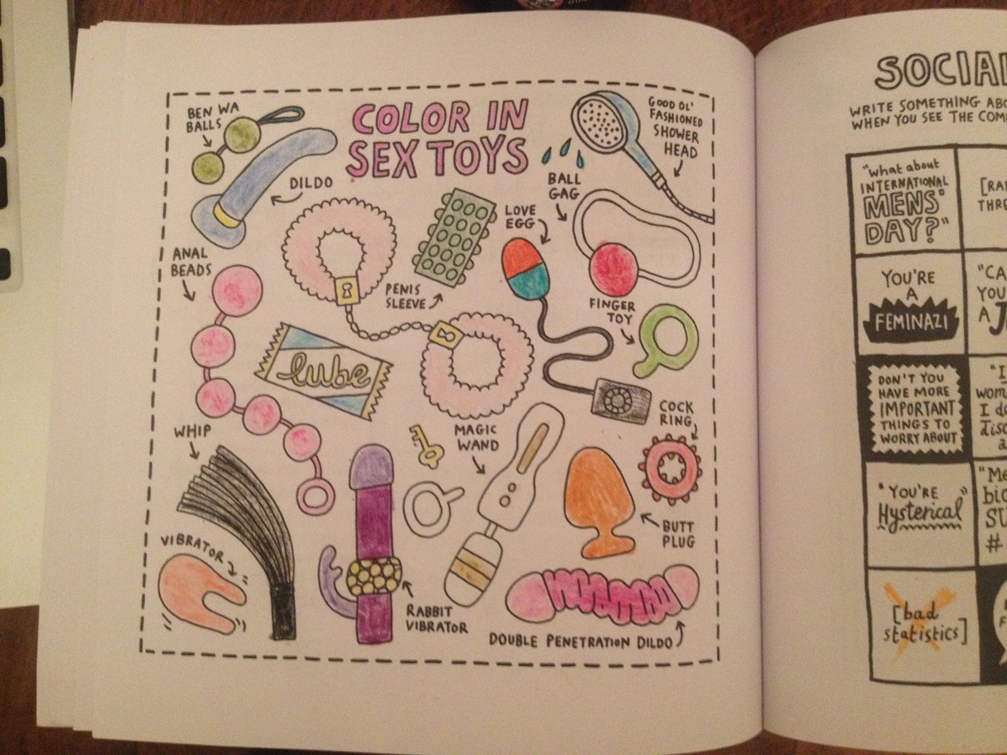 The last thing I did with this book was turn to the colored-in "Destroy the Page-Triarchy!" section, which is meant to be desecrated ("Rip it up! Scribble all over it! Smash it with a hammer!").