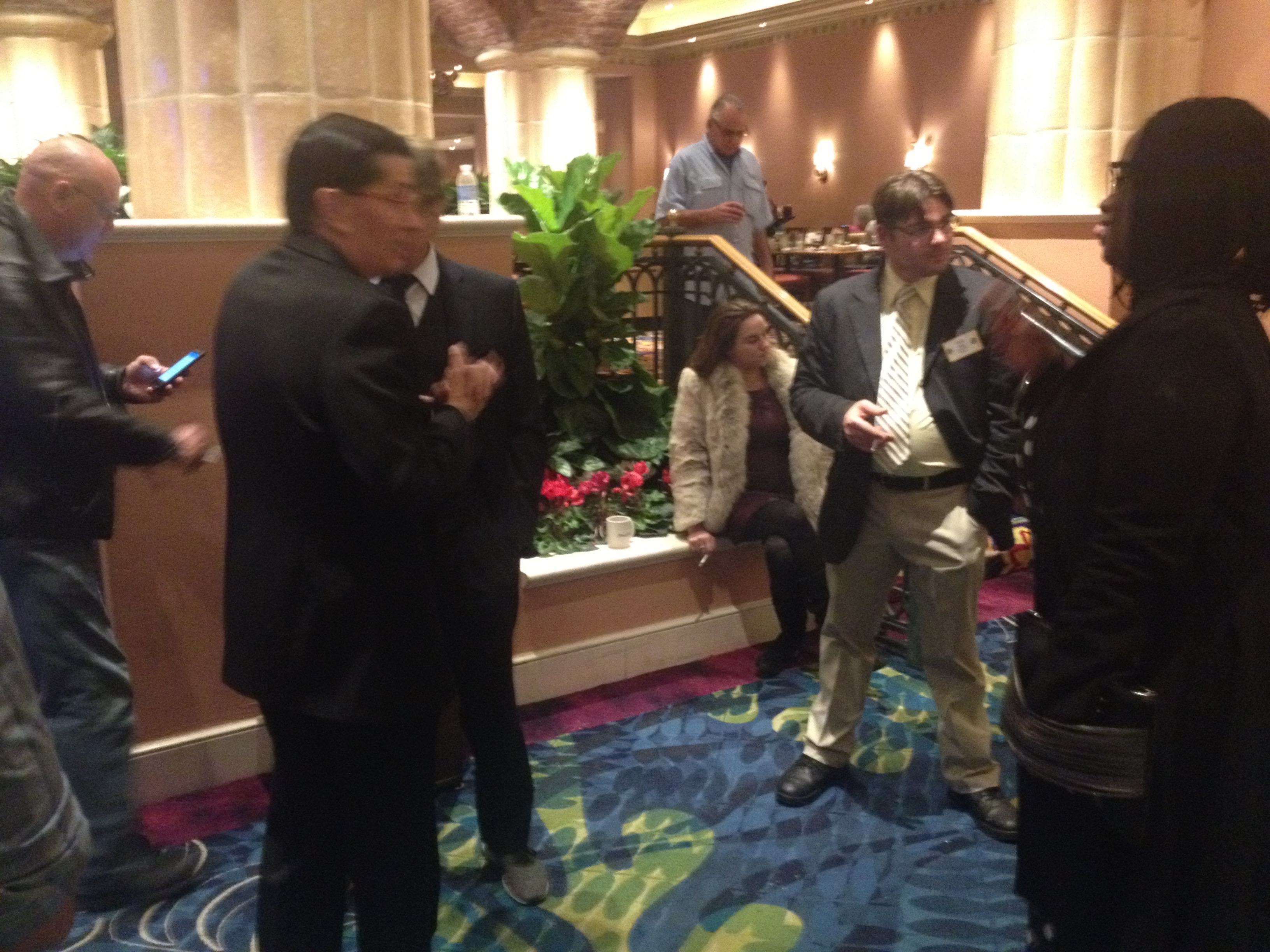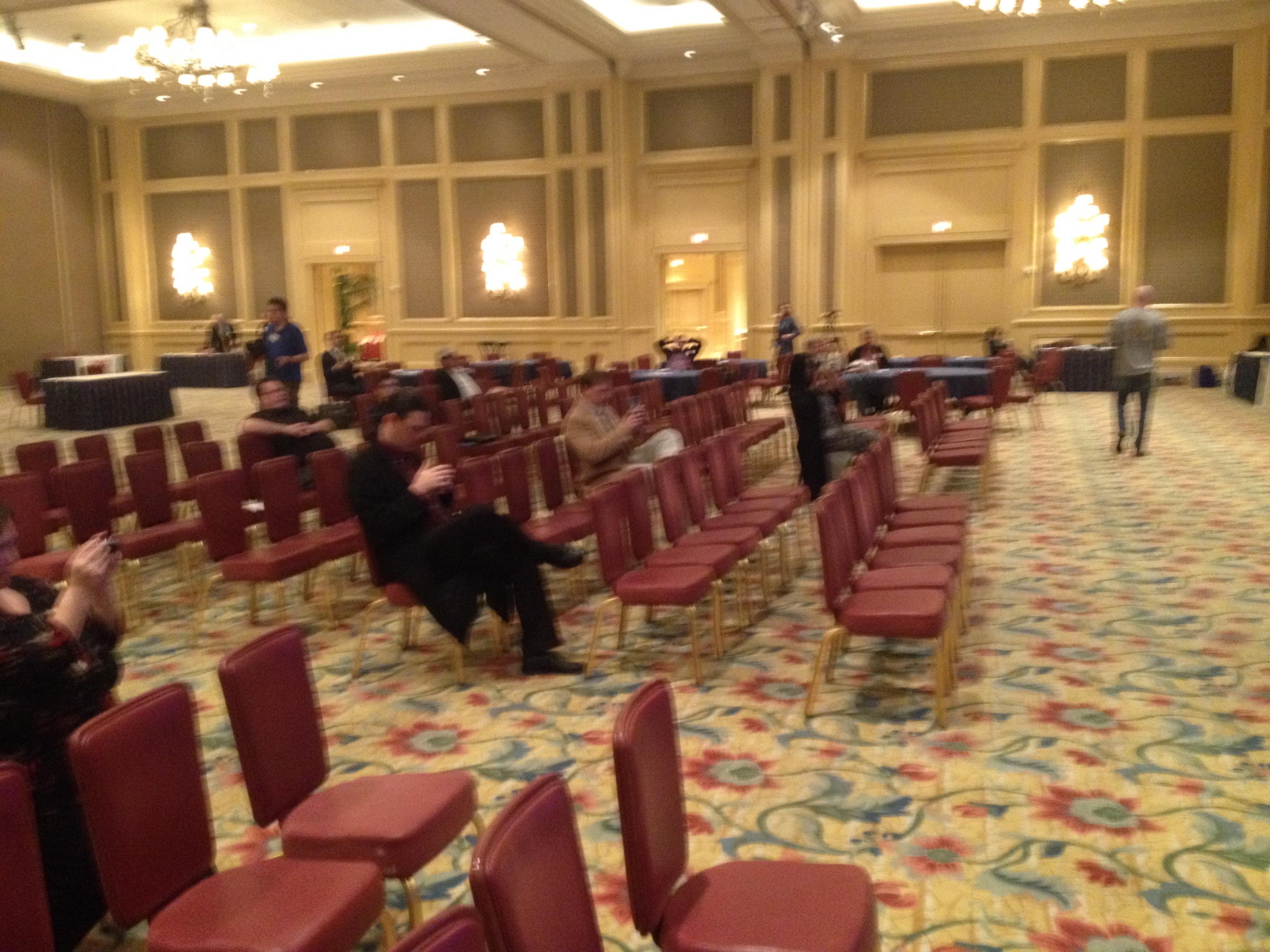 When round one ended, we were told to go to the lobby to vote with our coins. Here I found myself between the horns of an ethical dilemma. As a journalist I wasn’t sure that I should be trying to influence the outcome of the partisan event that I was covering. On the other hand, I was genuinely worried about what some of these people would do if they lost and wanted me to shore up the vote for them. I ended up putting my coins on the floor in the lobby and going down the escalator to the casino again.