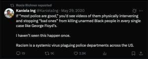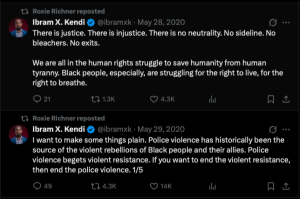 Another post Richner shared was written by anti-racist activist Ibram X. Kendi, who blamed law enforcement for the "violent rebellions of Black people."
