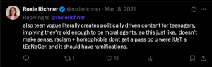 Richner, however, has argued that social media posts shouldn't get a pass just because of when they were posted.