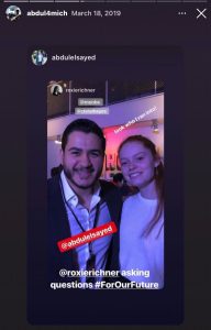 The two kept in touch in the years following that campaign. They shared a photo on Instagram in February 2020 highlighting their matching shoes, with El-Sayed describing Richner as "the boss." That June, Richner joined El-Sayed on a National Children’s Campaign panel and argued in favor of enacting Medicare for All, a central part of El-Sayed's Senate campaign platform.