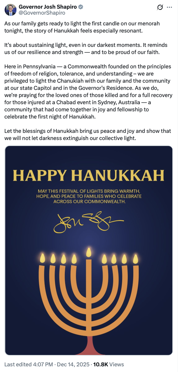 A House of Representatives candidate in Pennsylvania posted a heartfelt message on X about the shooting at Brown University and attack at a Hanukkah festival in Sydney, Australia, before deleting the post and replacing it with one that only mentioned Brown.