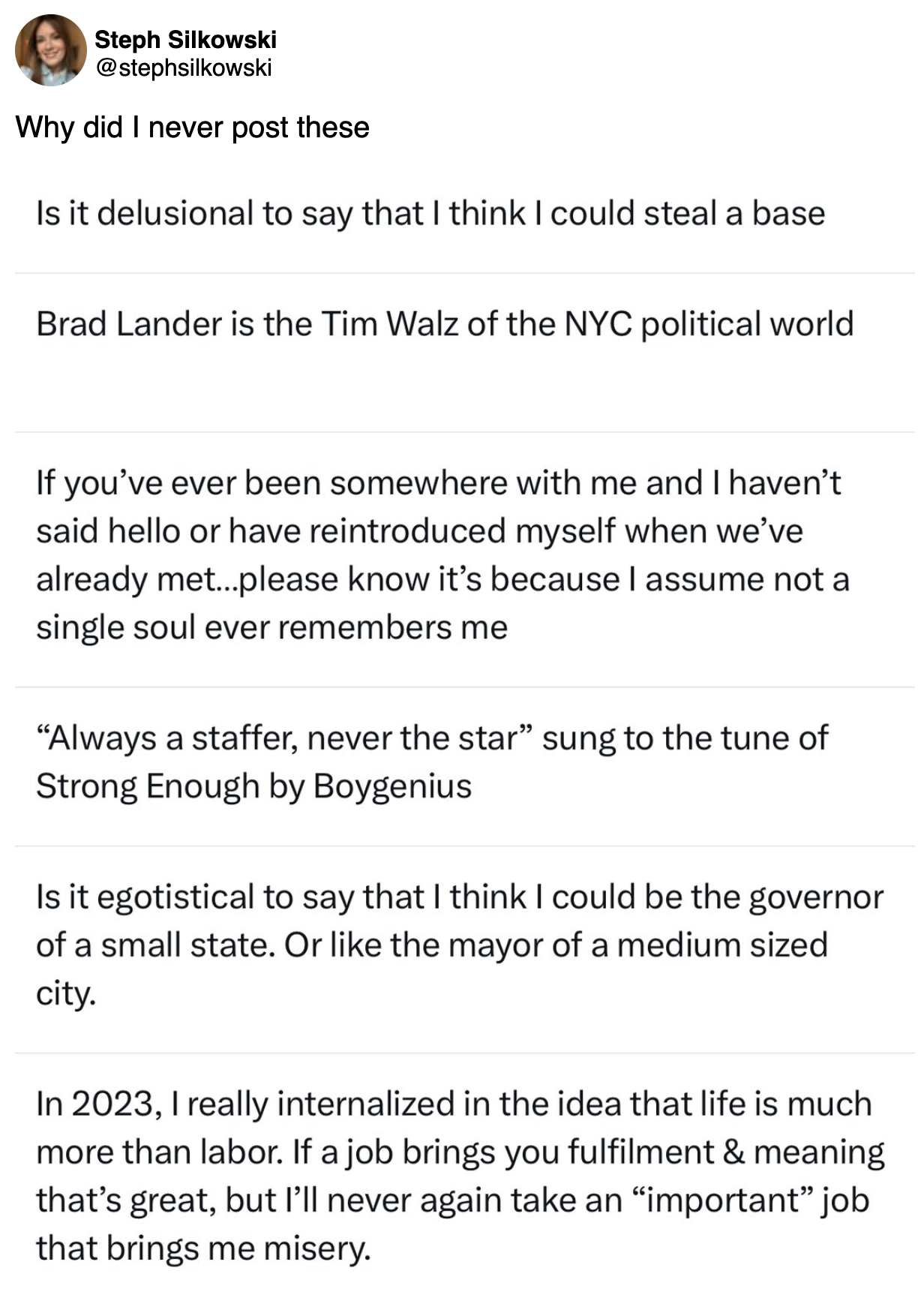 Silkowski's position leading the appointments office will have her play "a critical, supportive role in the placement of candidates for senior leadership positions within the Administration," according to the office's website. She deleted her X account in the days leading up to the announcement of her new role, following the leads of other Mamdani appointees. The head of Mamdani's Office to Protect Tenants, Cea Weaver, caused controversy with deleted posts in which she denounced private property and homeownership as "weapon[s] of white supremacy" and shared her desire to "impoverish the *white* middle class." Another, Mamdani's chief equity officer, Afua Atta-Mensah, also disparaged white people in deleted posts. Like Silkowski, Weaver and Atta-Mensah purged their social media activity before joining the Mamdani administration, likely hoping to avoid the fate of Mamdani's original pick to lead the appointments office, Catherine Almonte Da Costa. Da Costa resigned after old posts bemoaning "Money hungry Jews" came to light in the days before Mamdani took office.