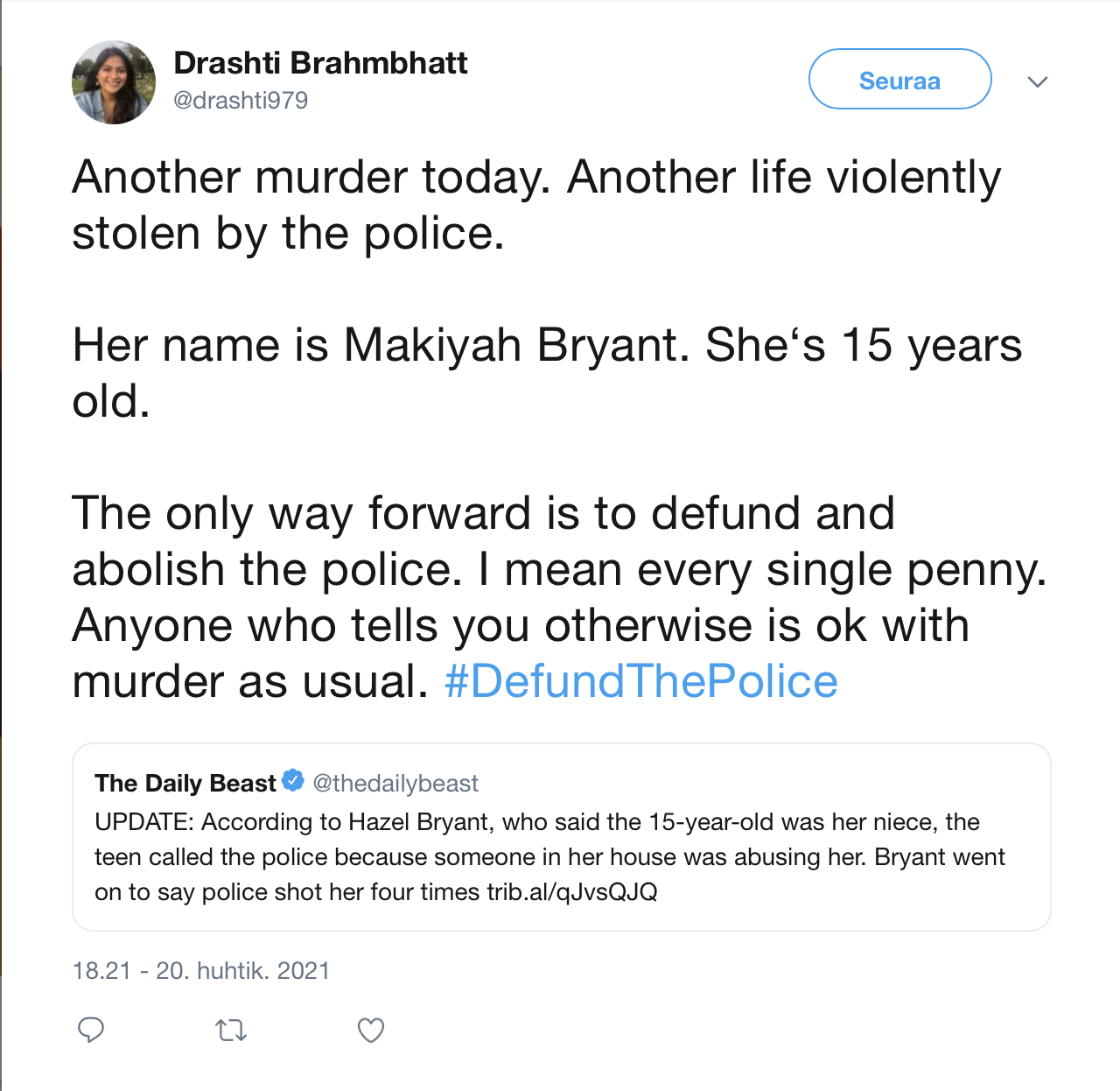 Brahmbhatt's radical views do not end with Israel. She wrote in a since-deleted 2021 post on X that she believes anyone who does not want to abolish the police is "ok with murder."