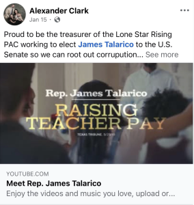 Clark said in a now-deleted Facebook post in January that he was proud to lead a super PAC working to elect Talarico "so we can root out corruption by banning … super PACs."