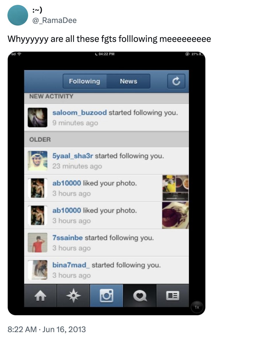 Other posts from the since-deleted accounts show Duwaji using the n-word and referring to "fgts."