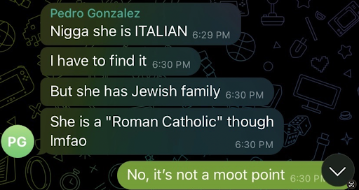 In the messages published last month by Breitbart, Gonzalez also railed against Daily Wire editor in chief Ben Shapiro, to whom he objected because Shapiro is "a Jewish Jew who likes Jewish stuff and Israel" and because Jews like Shapiro "instinctively fear living under Christian, especially European, rule"—a point, he noted, that cannot be discussed "in the open."