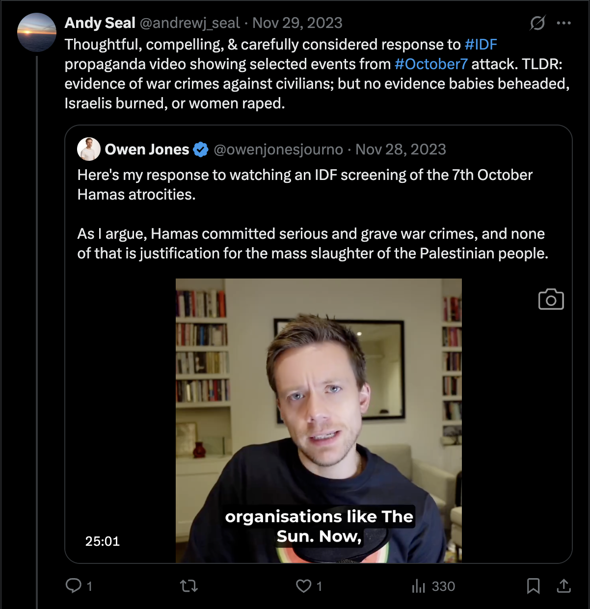 Hamas and the Houthis are not the only aggressors Seal has defended. As noted by Israeli researcher Eitan Fischberger and UN Watch executive director Hillel Neuer, much of his social media activity includes repeating Iranian propaganda.