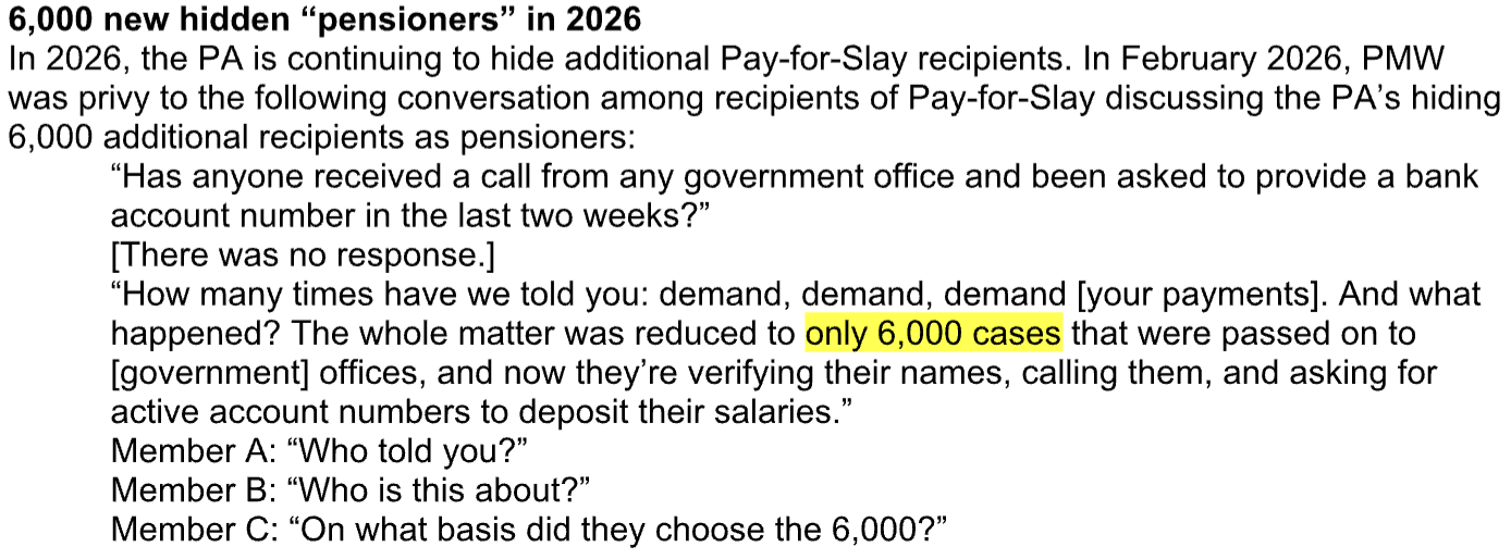 PMW used newly unearthed Telegram chat logs to determine that the PA has rerouted terrorism payments through its pension program.