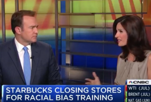 Starbucks closed its corporate stores for three hours Tuesday afternoon to conduct racial sensitivity training, and the media's response to this historic event was overwhelming. After CEO Kevin Johnson and executive chairman Howard Schultz appeared on multiple shows to tout their anti-bias measures, reporters and anchors were eager to share those important talking points with viewers.
