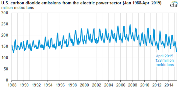 The Energy Information Administration released data last week showing that the American power sector’s CO2 emissions are now at their lowest levels since 1988.