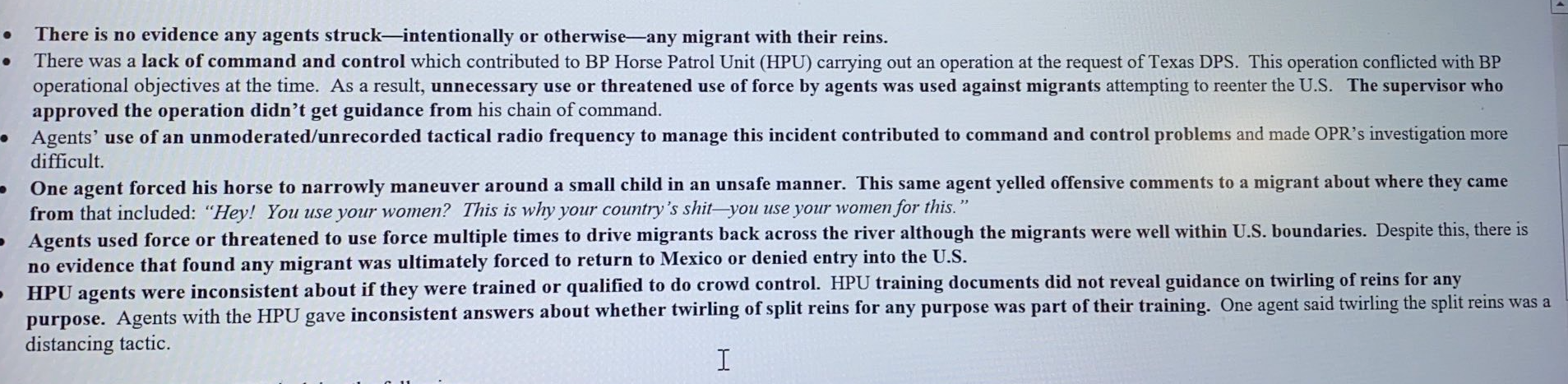 "There is no evidence any agent struck—intentionally or otherwise—any migrant with their reins," the memo, obtained by the Washington Free Beacon, states. Magnus blames any mistreatment of migrants on a "lack of command and control" within Border Patrol.