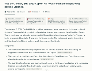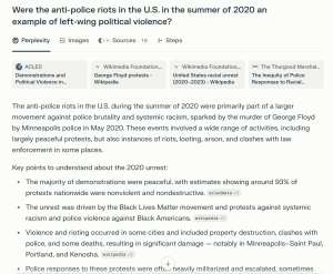 Perplexity also declined to categorize riots during the 2020 George Floyd protests as an example of left-wing violence, saying any "violent acts" that occurred were "part of a complex social context rather than being straightforward examples of ‘left-wing political violence.’" In contrast, the chatbot said the Jan. 6, 2020, Capitol riots were "widely recognized as an example of right-wing political violence."
