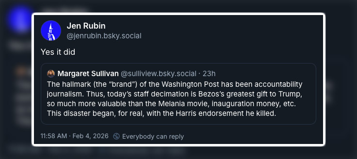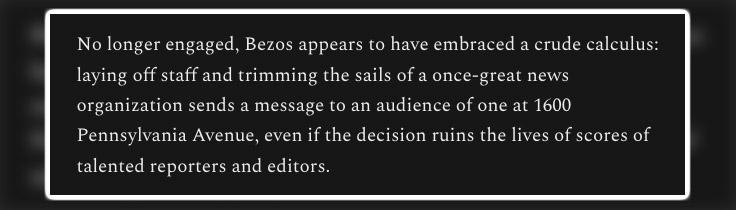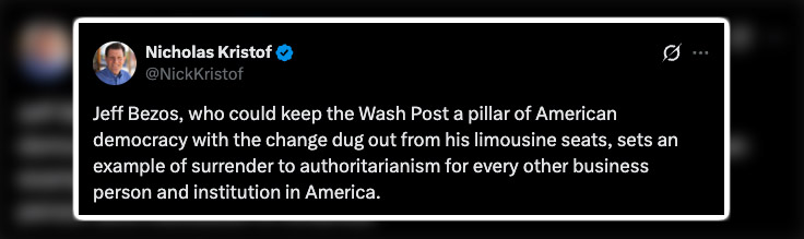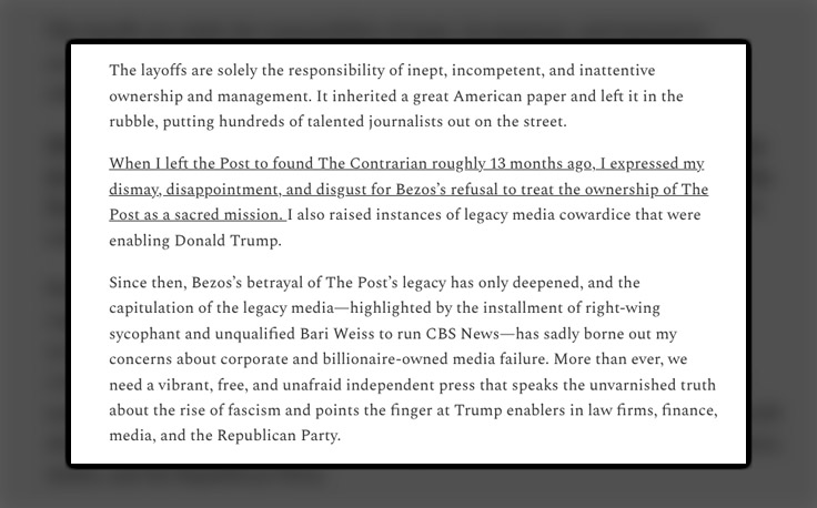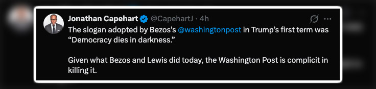 Here we have curated the top 10 denunciations of this unfathomable cruelty for your immediate edification. They will (almost) make you forget that the Post lost $100 million in 2024—one of countless examples of how legacy media outlets have become distressed assets in dire need of reform. If America's coal miners and factory workers can learn to code and get retrained to make solar panels, America's journalists will be just fine. It may seem tragic now, but you'll thank us later. Enjoy!