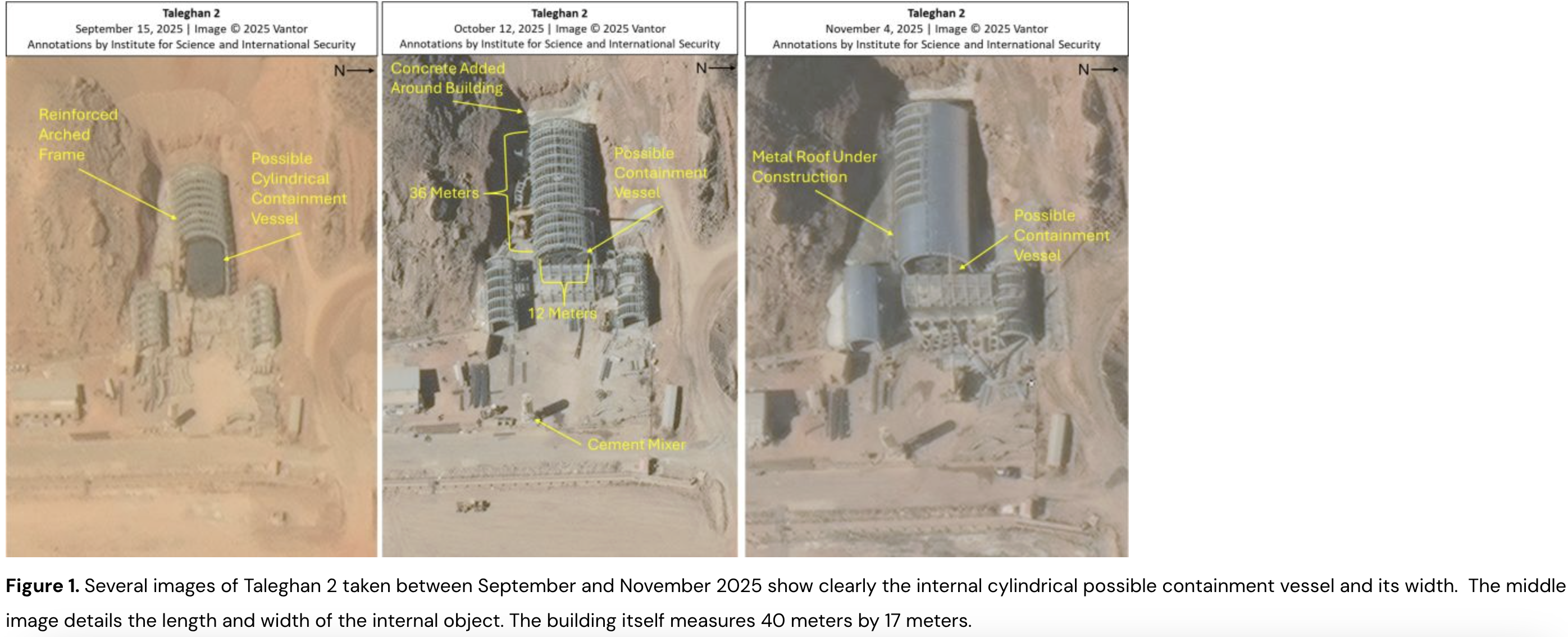 Photos from December, before Iran completed the concrete construction, depict what the institute called a "cylindrical chamber resembling a high explosive test chamber," which may indicate that the regime plans to use it for nuclear tests.