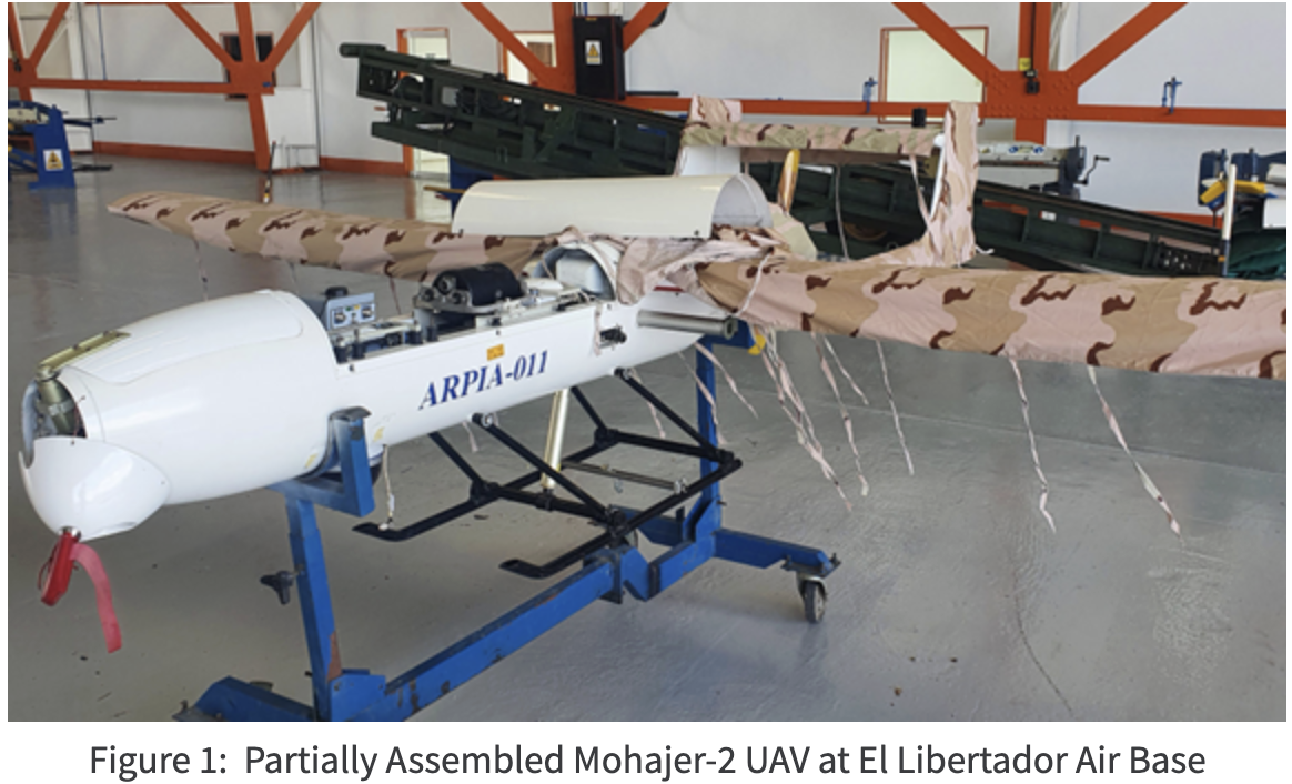 The Treasury Department published photos that show partially built Mohajer-6 drones sitting in a warehouse at the El Libertador Air Base, the central hub for Tehran's illicit weapons activities.