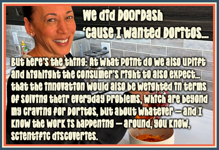 Kamala Harris might run for president again, which would be hilarious, but first she has to make a decision about the California governor's race. Eugene Daniels, the embattled president of the White House Correspondents' Association, exclusively reported last week that Harris was recognizing the importance of understanding what needs to be done in terms of thinking seriously as well as decisively about her political future. Harris, who served as the Biden administration's artificial intelligence czar, made some insightful remarks about Doritos this week at the HumanX technology conference in Las Vegas.