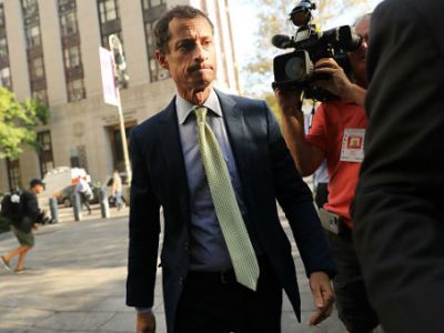 A documentary was released earlier this year about Weiner's political downfall as a result of his fling with Leathers. Weiner and his wife, Huma Abedin, have reportedly not seen the documentary.