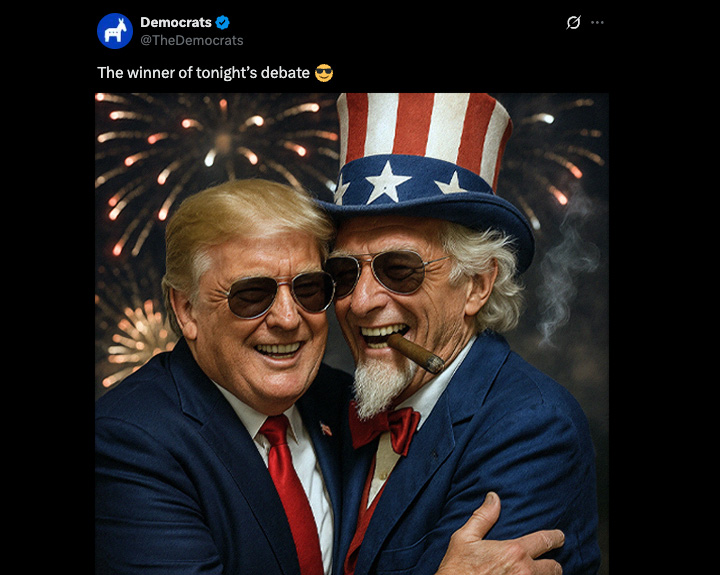 Exactly one year ago today, President Joe Biden wandered onto a CNN debate stage in Atlanta. Democrats were oozing confidence ahead of the showdown against Donald Trump. They had managed to persuade most mainstream journalists that all the video clips of Biden bumbling around like a demented geezer were dangerously misleading "cheap fakes." Former Hillary Clinton strategist Zac Petkanas argued Biden had "already won" so long as he wasn't "wheeled out on stage in a hospital bed." Biden's campaign team posted a photo of the president "feeling pretty jacked up" and holding a can of "Dark Brandon" water.